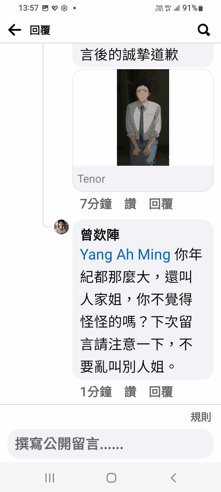 我就氣到在我那篇底下留言