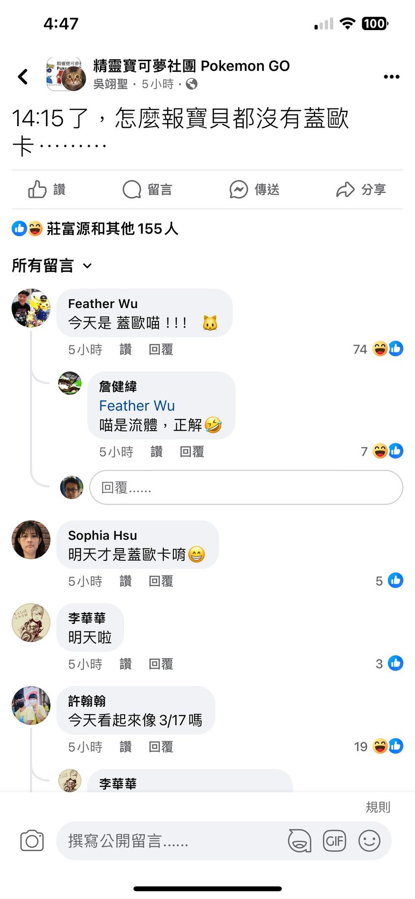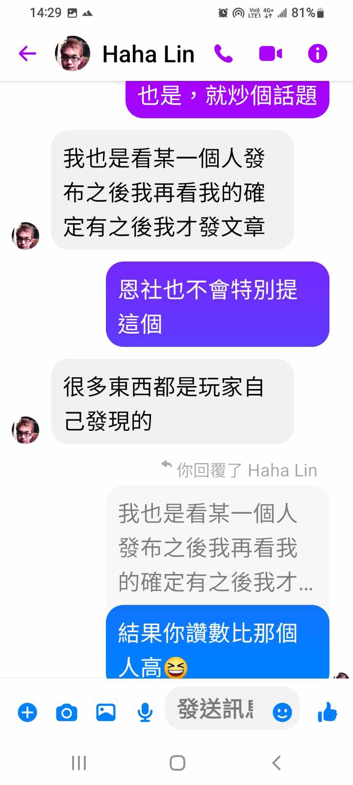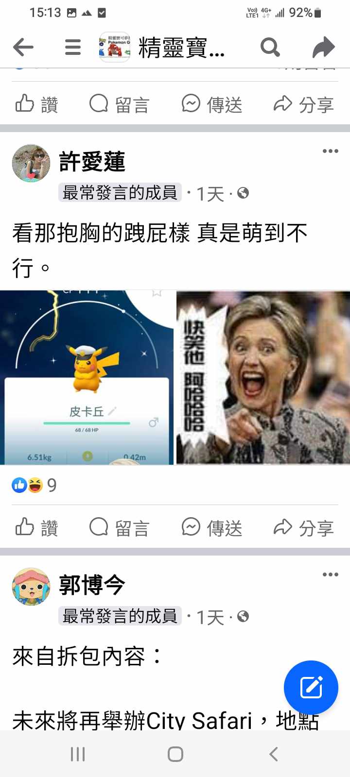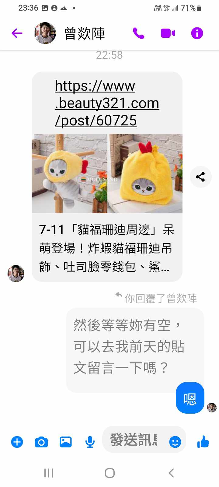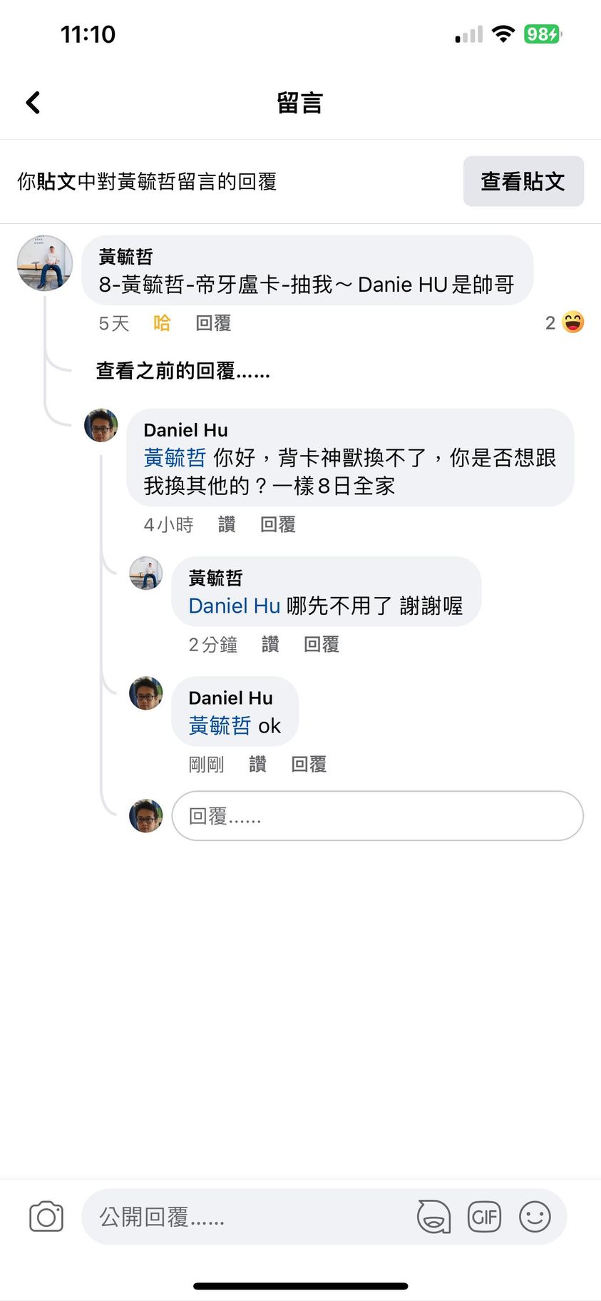 我就去你貼文看了