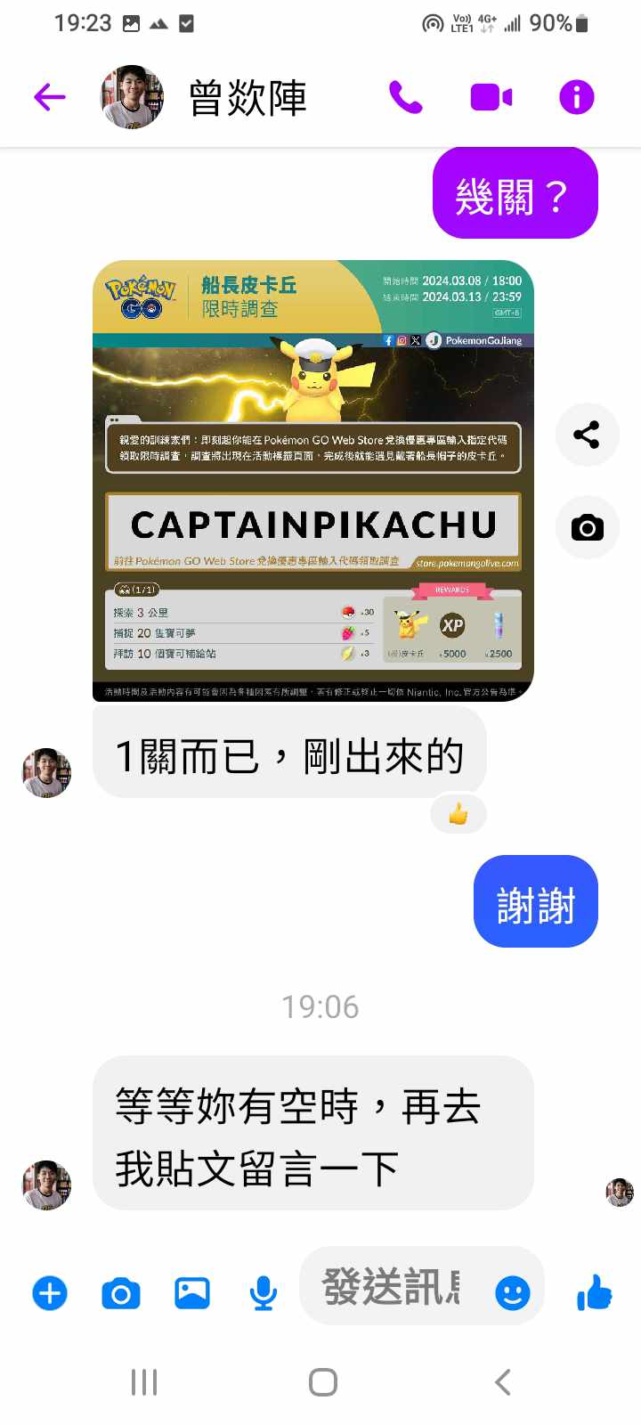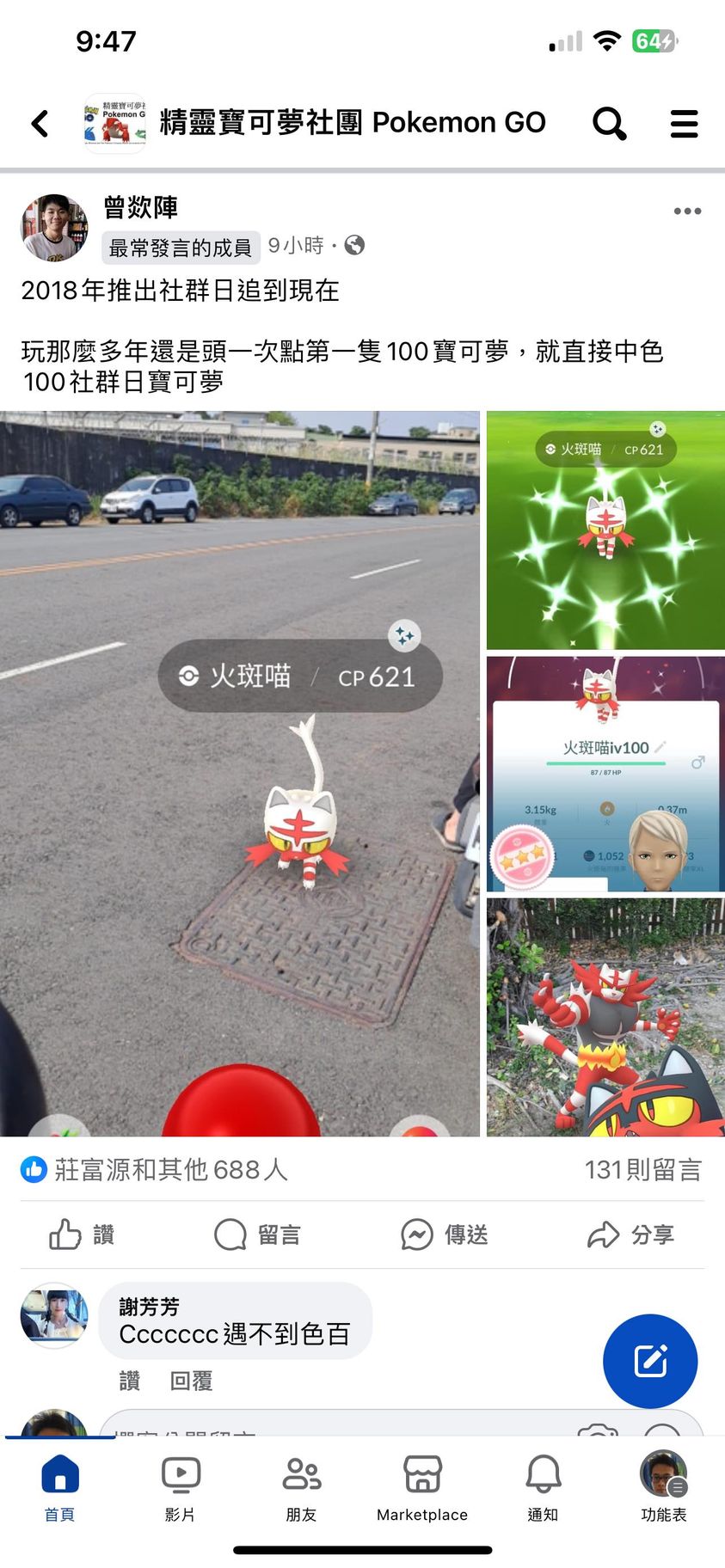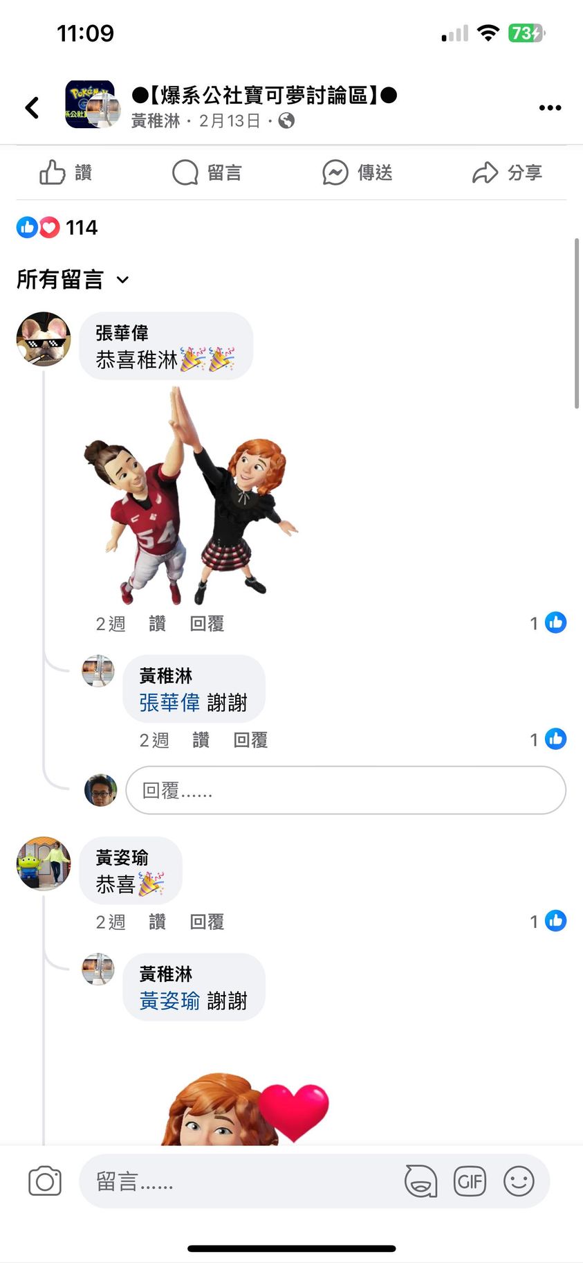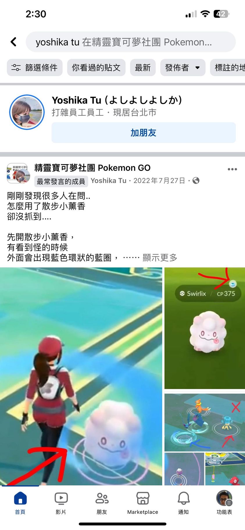 我就去你貼文看了