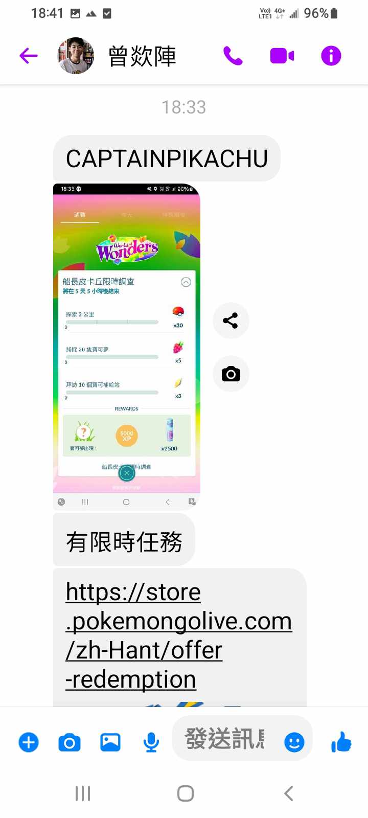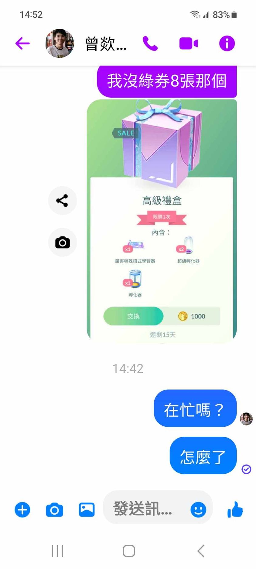 對你的訊息「」傳達了 😮 心情