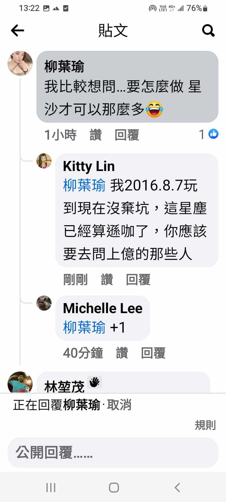 啊!有個鄭月琳女的,有進來找碴過,我那篇貼文是寫聚焦一小時補星塵多少,蠻滿意