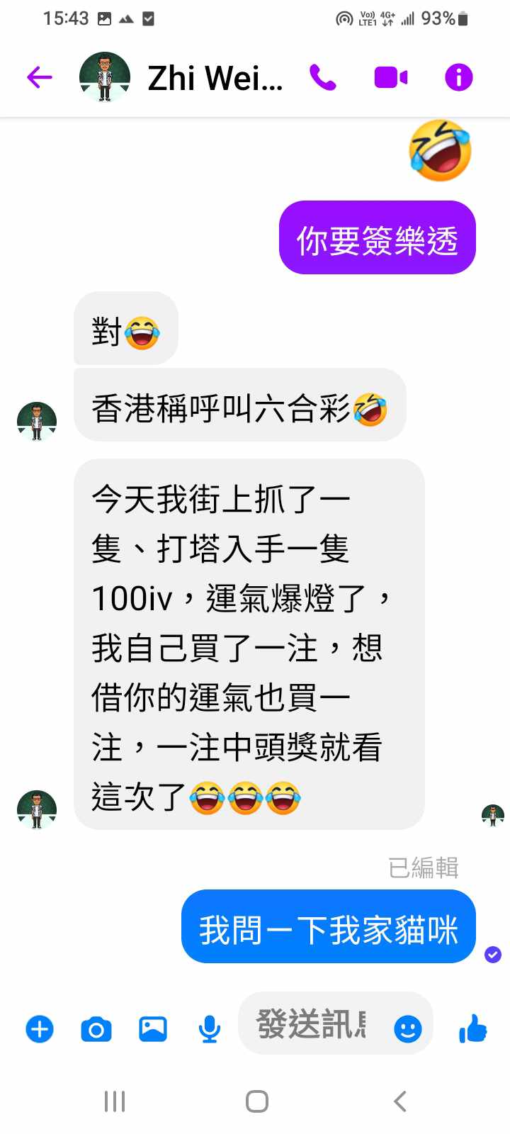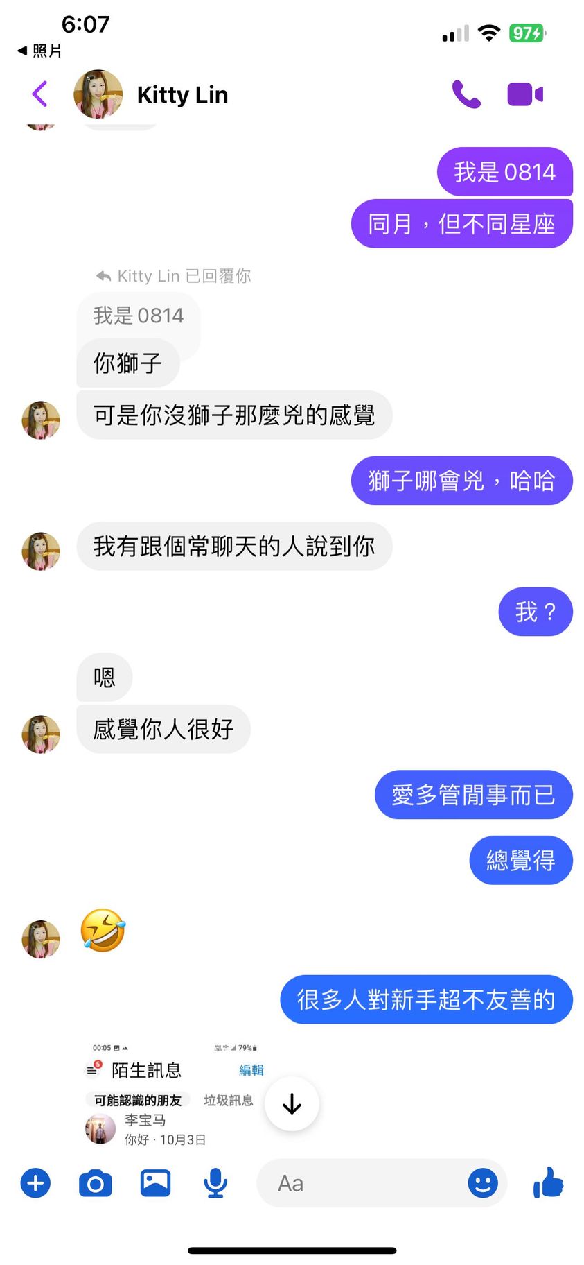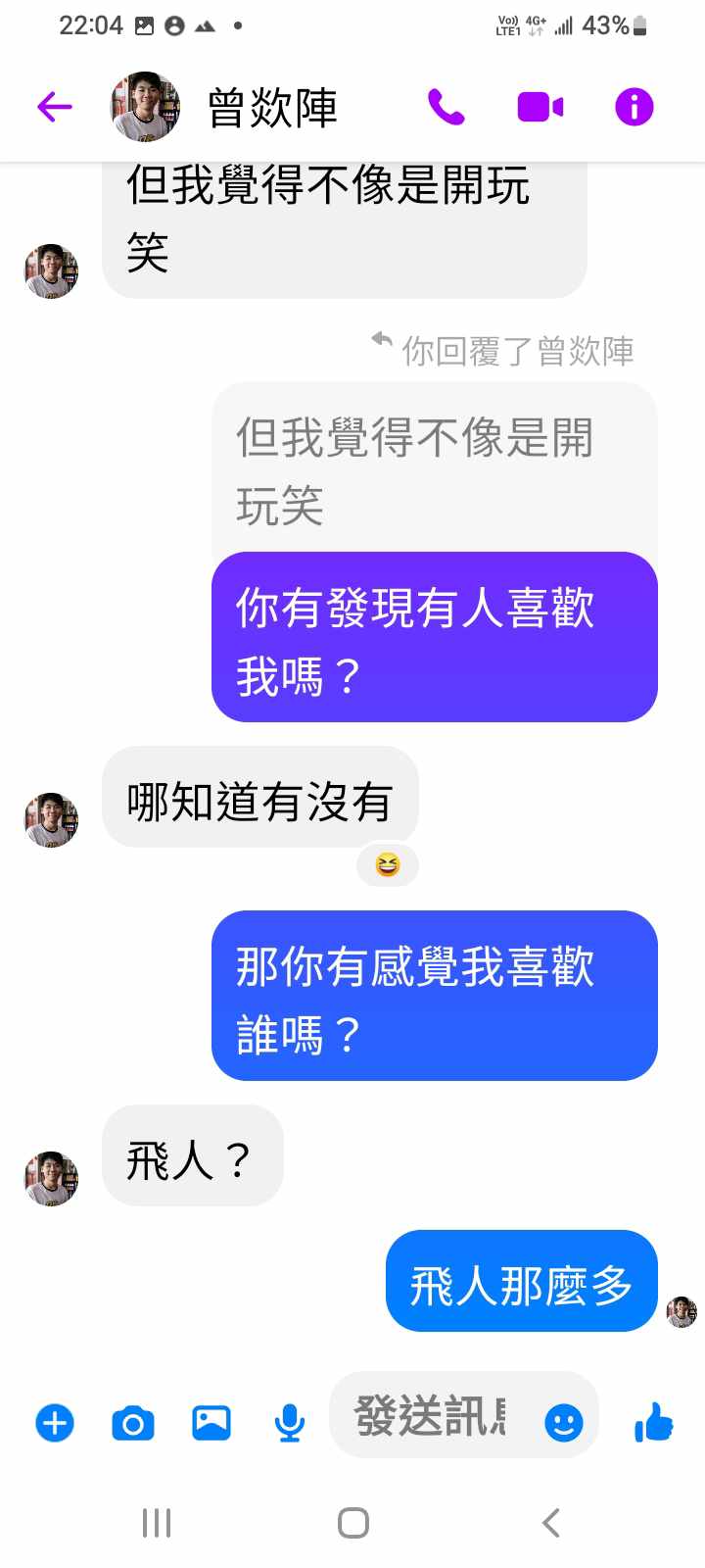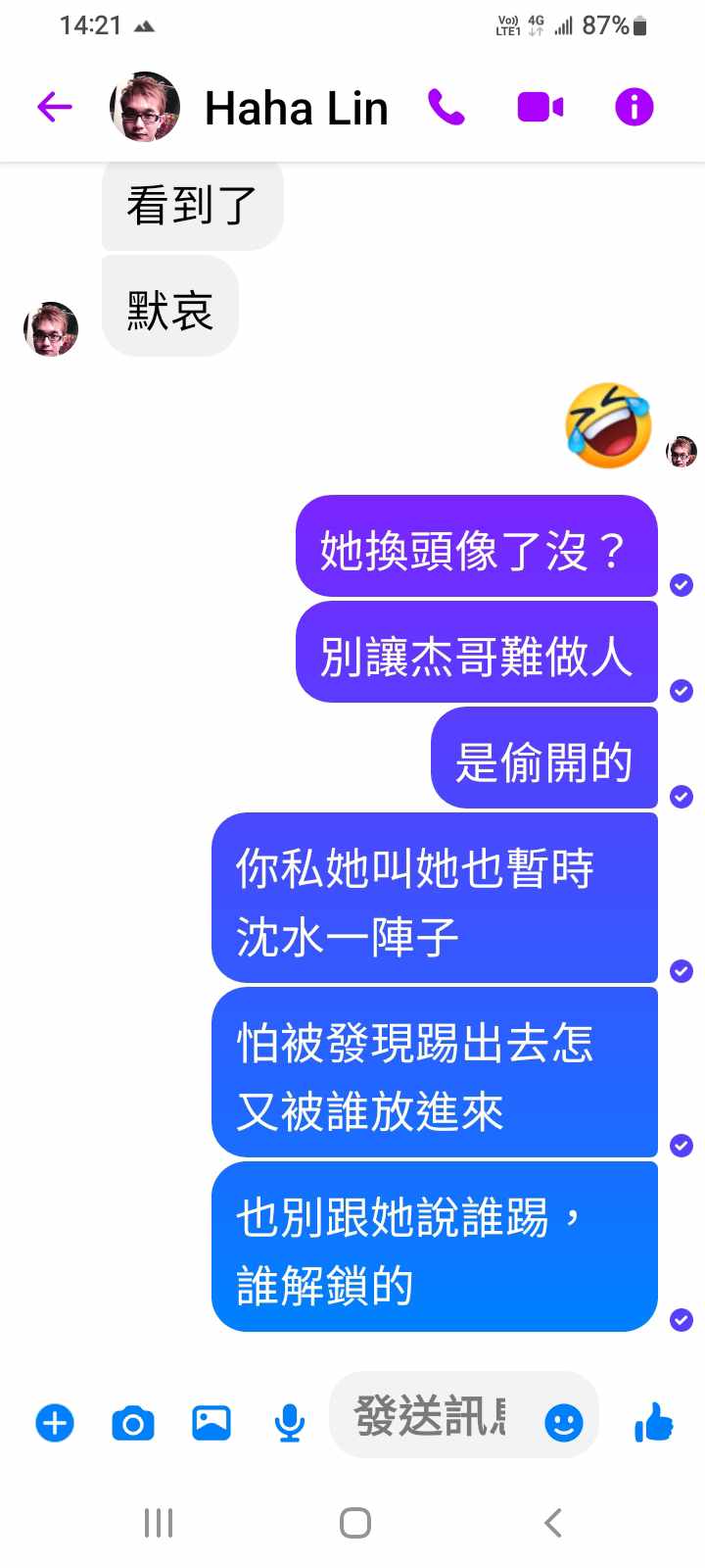 對你的訊息「」傳達了 😆 心情