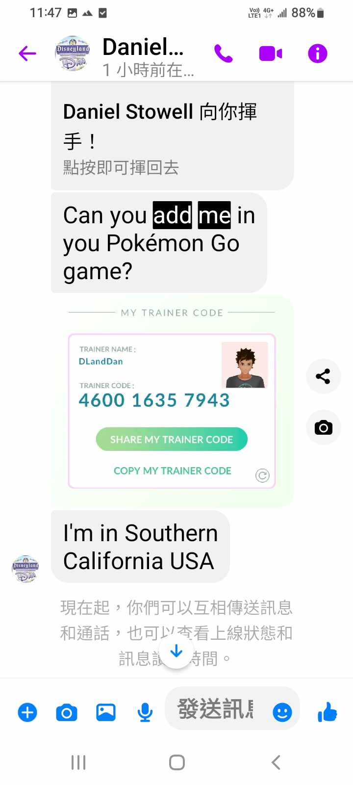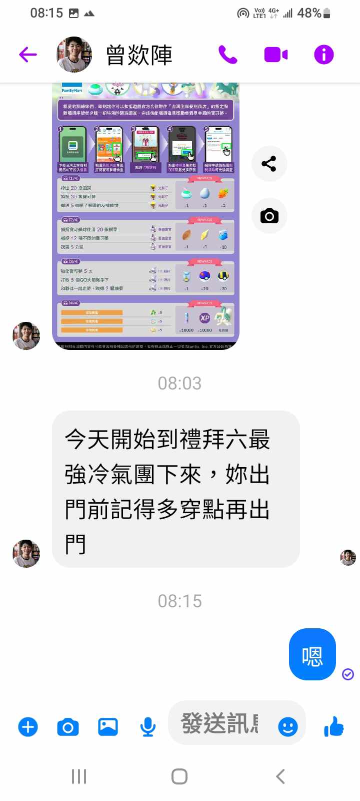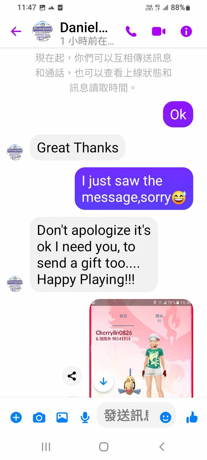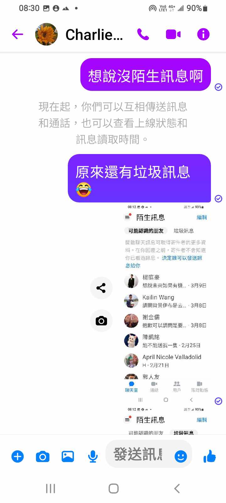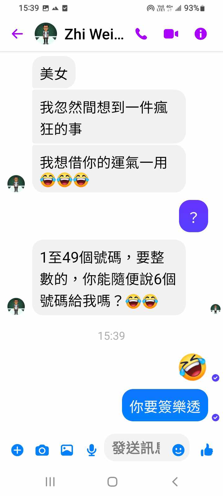 對你的訊息「」傳達了 😆 心情