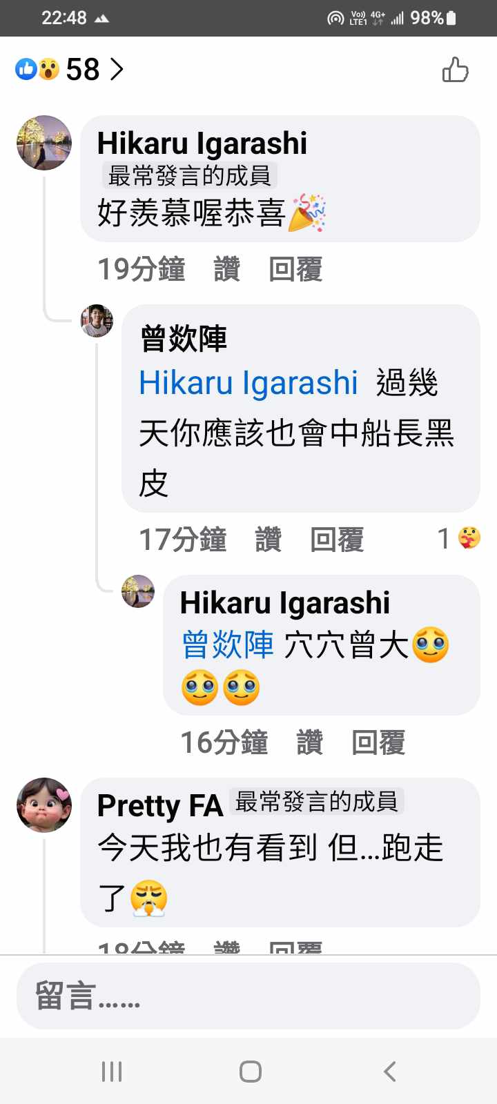 之前有個飛人加進來社團,因為看我常貼色違文,感覺很嫉妒
