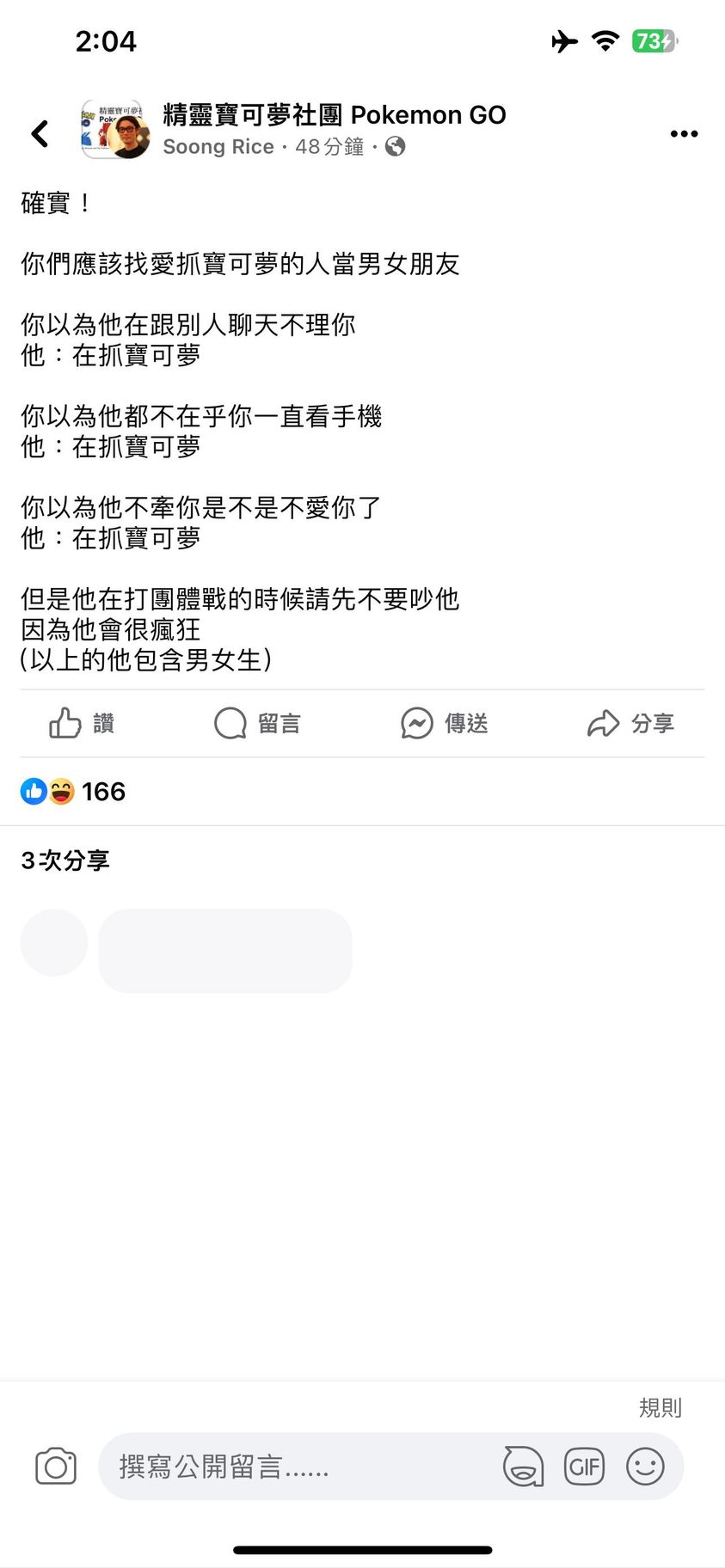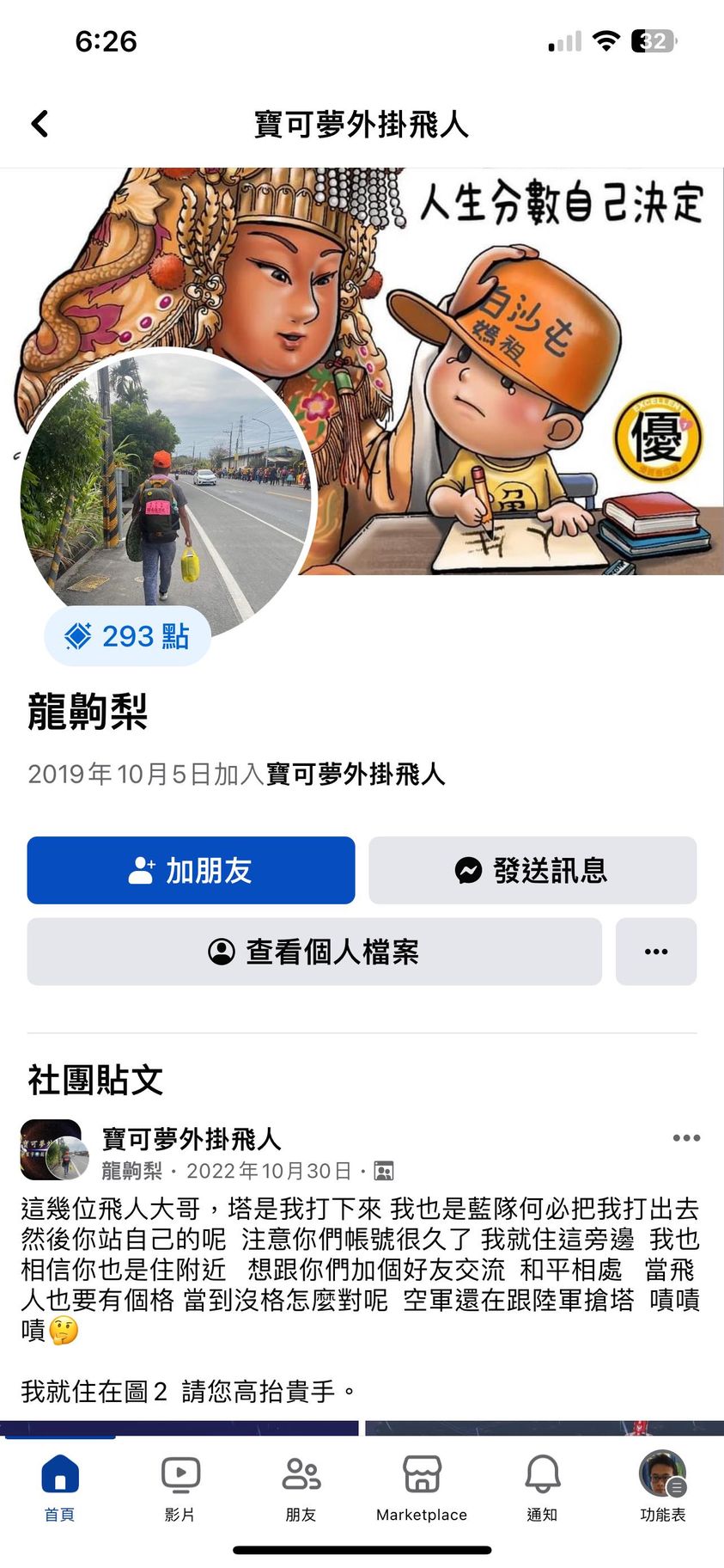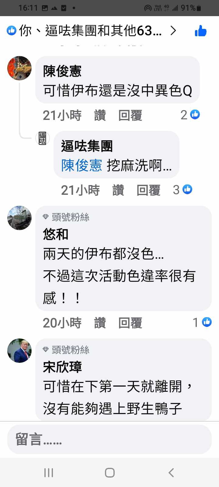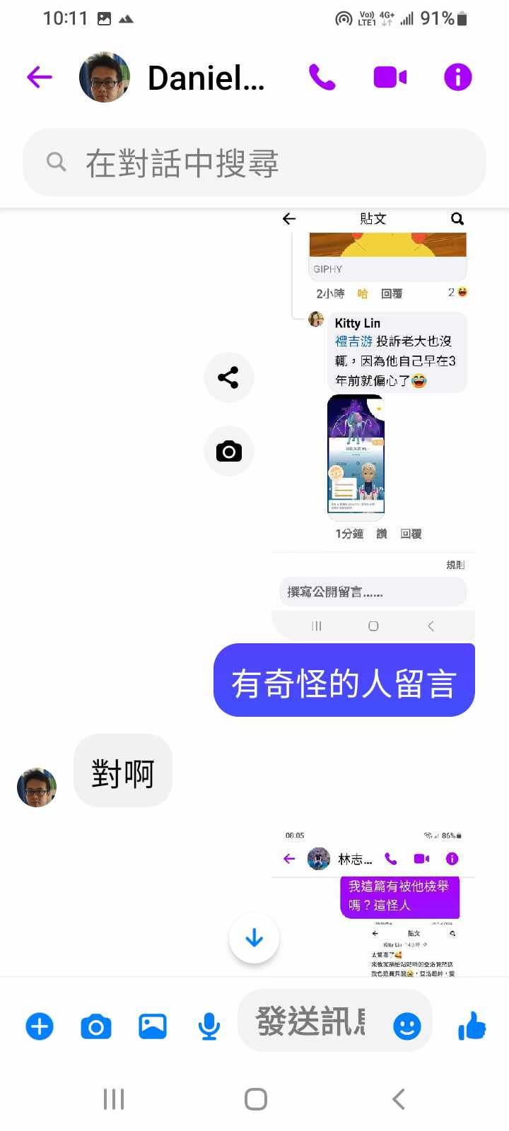 結果發現他有發飛人貼文