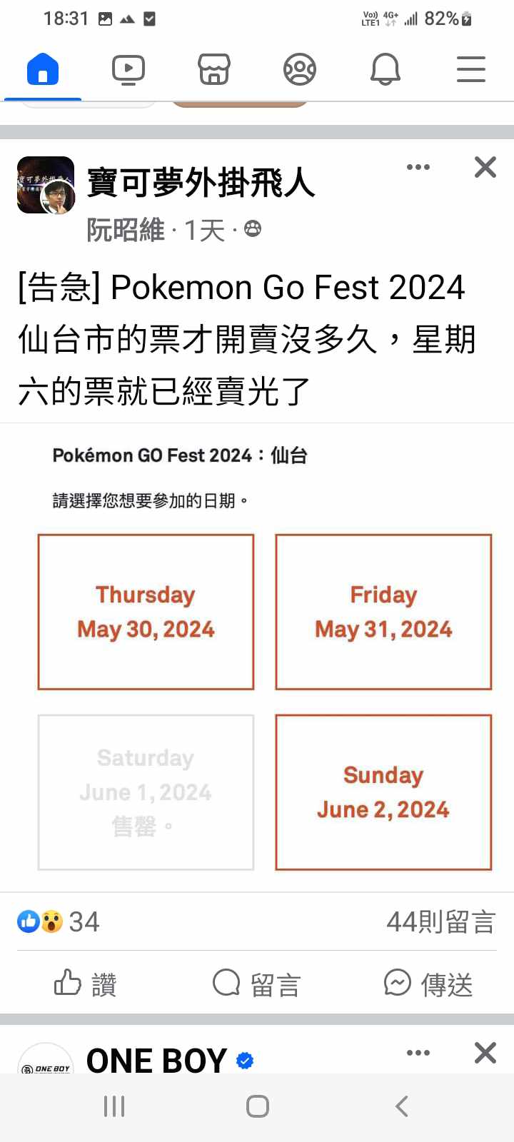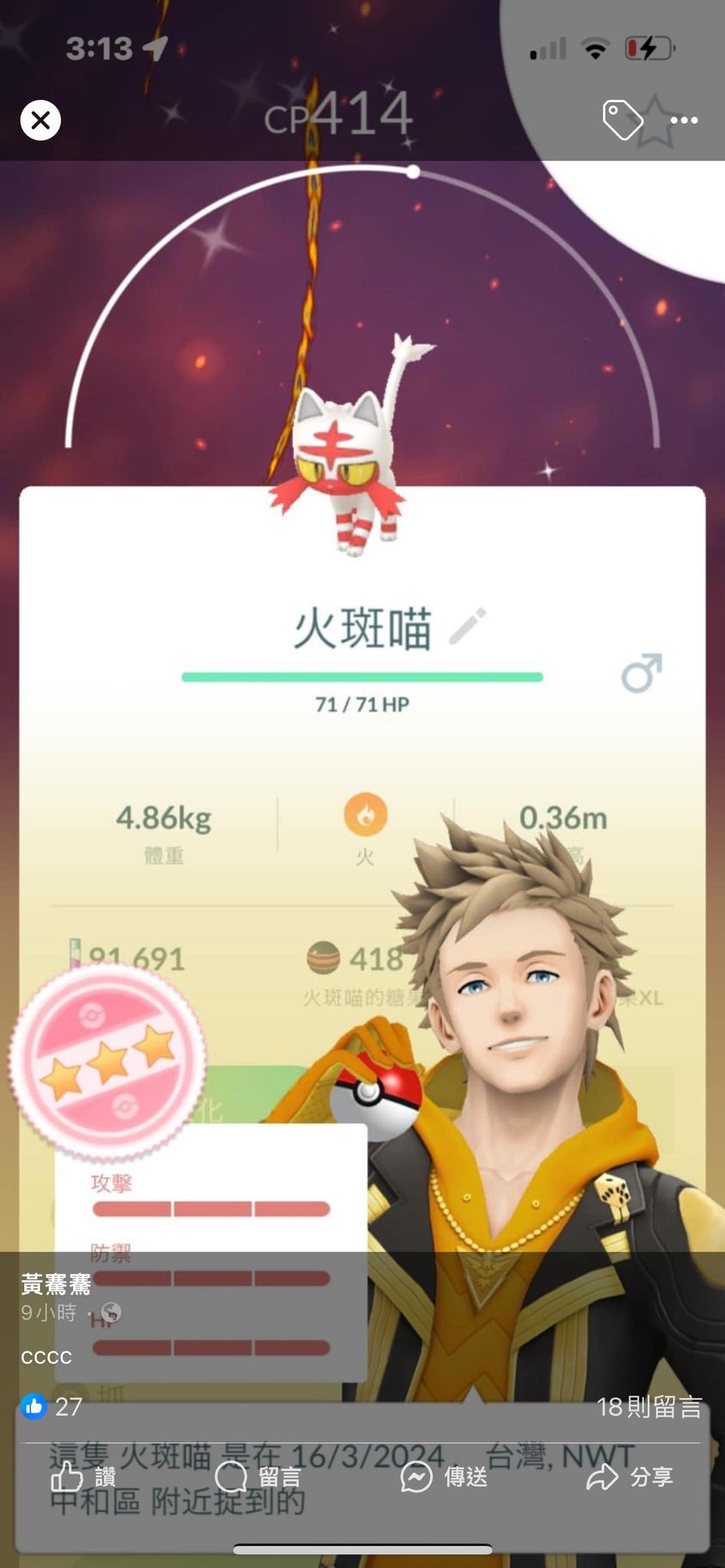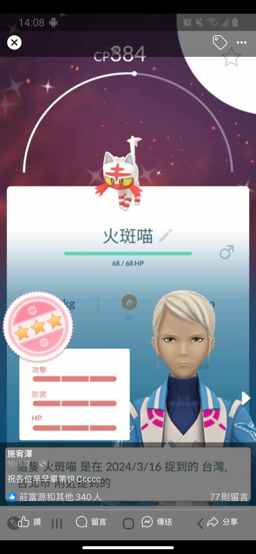 結果發現他有發飛人貼文