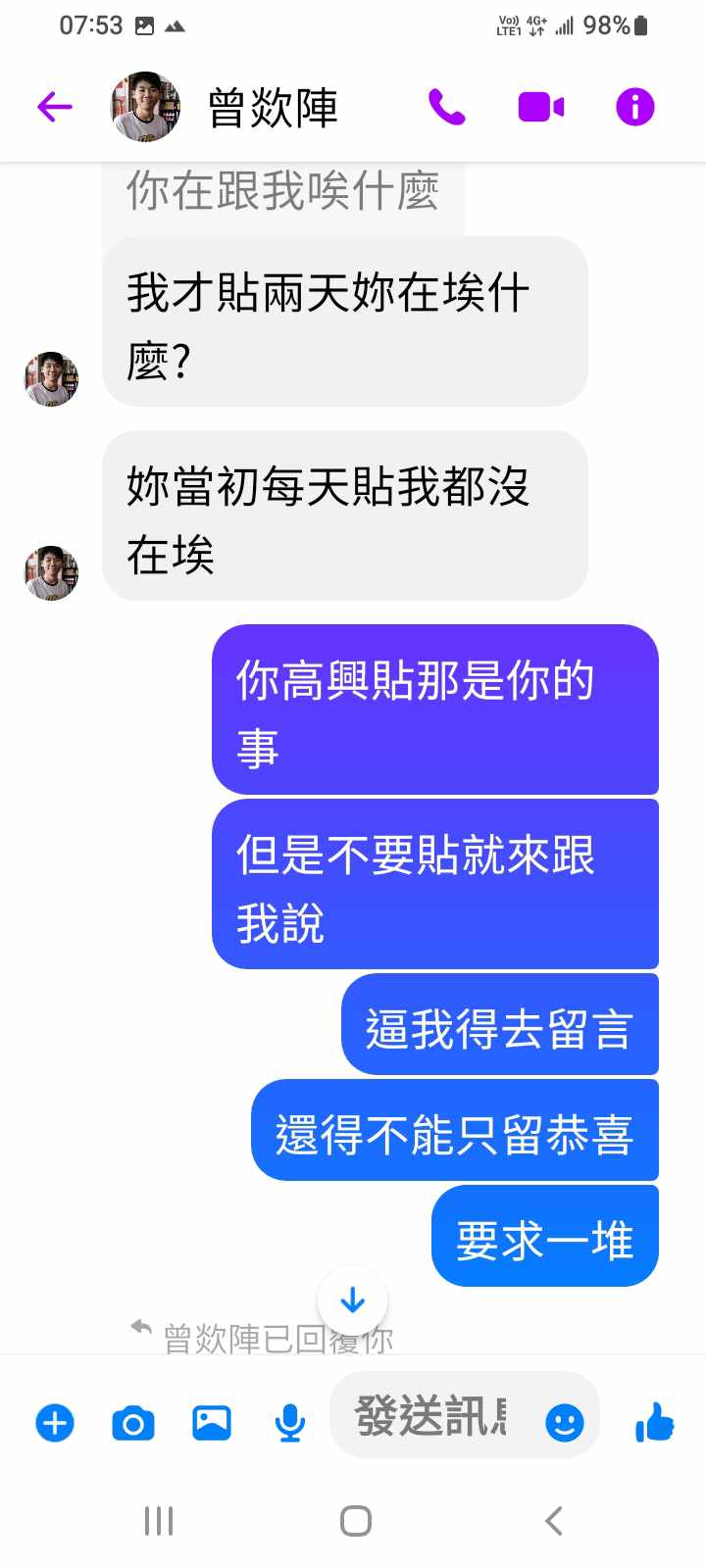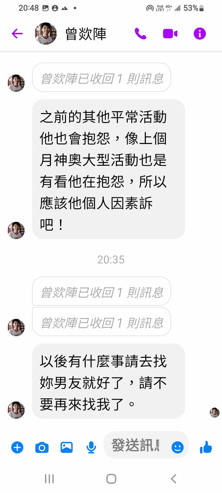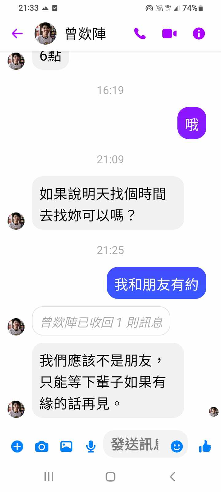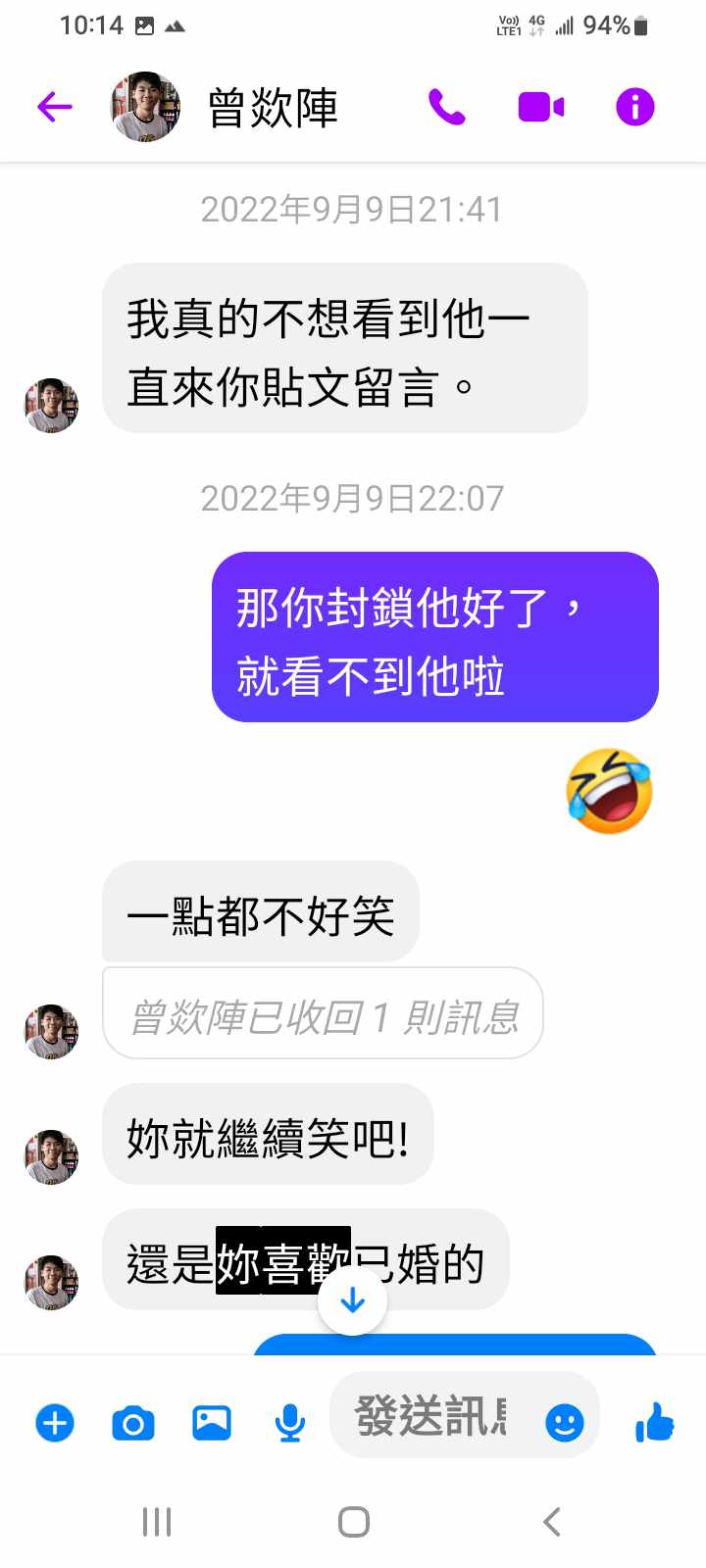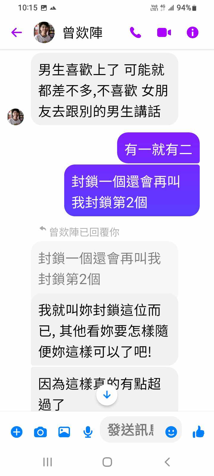 曾叫我封鎖他