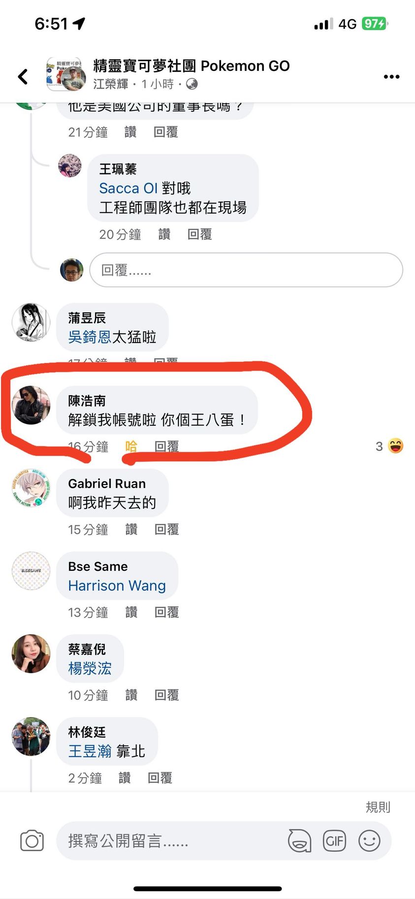 然後有個人底下起鬨,說已封鎖